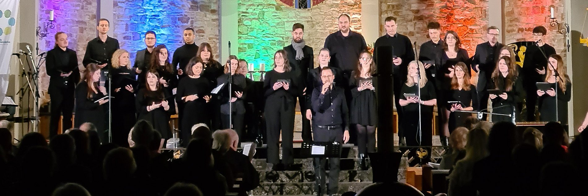 Vor der vollbesetzten Kirche St. Katharina in Bad Soden kamen die Frauenschola Oberhöchstadt, der Junge Chor St. Peter und Paul aus Hofheim, JuVokal aus Bad Soden, der Kirchenchor St. Martinus-Hattersheim, die Rhythmusgruppe Eschborn und das Vokalensemble Deáno zusammen und konnten durch die Verschiedenheit und Qualität ihrer Beiträge die Buntheit und Potentiale der Region auf die Bühne bringen.
