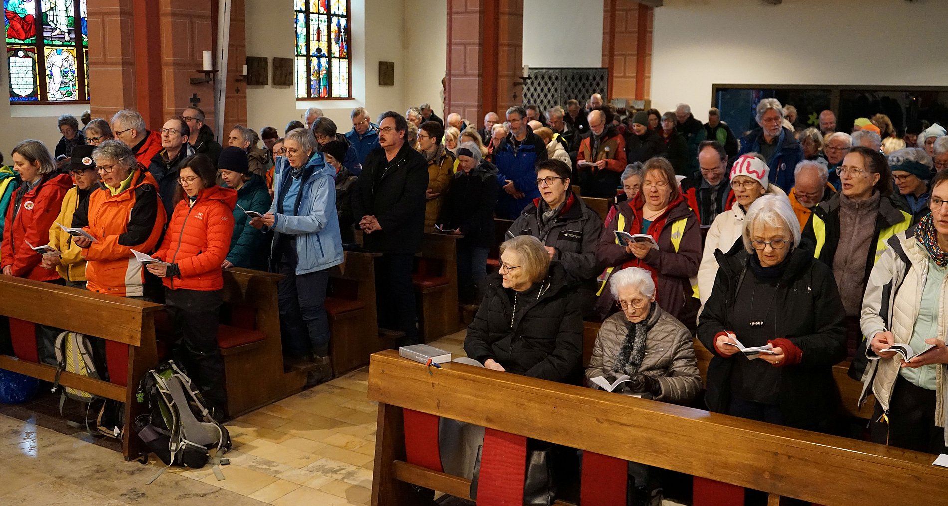 Begleitet wurden die Wallfahrtsgruppen auf dem letzten Stück Wegstrecke von den Mitgliedern der AG Pfarrpfad der Pfarrei St. Elisabeth Hofheim, die die Wandernden in Diedenbergen und Eppstein begrüßten und auf einem Wanderweg, der im Zuge der Pfarreigründung entwickelt wurde, in die Stadtmitte Hofheims führten. Das Projekt Pfarrpfad habe seinerzeit viel zur Akzeptanz der neuen Pfarrei beigetragen. Neue Kontakte zwischen den Kirchorten seien dadurch entstanden, erzählte Bernhard Hohmann von der AG.