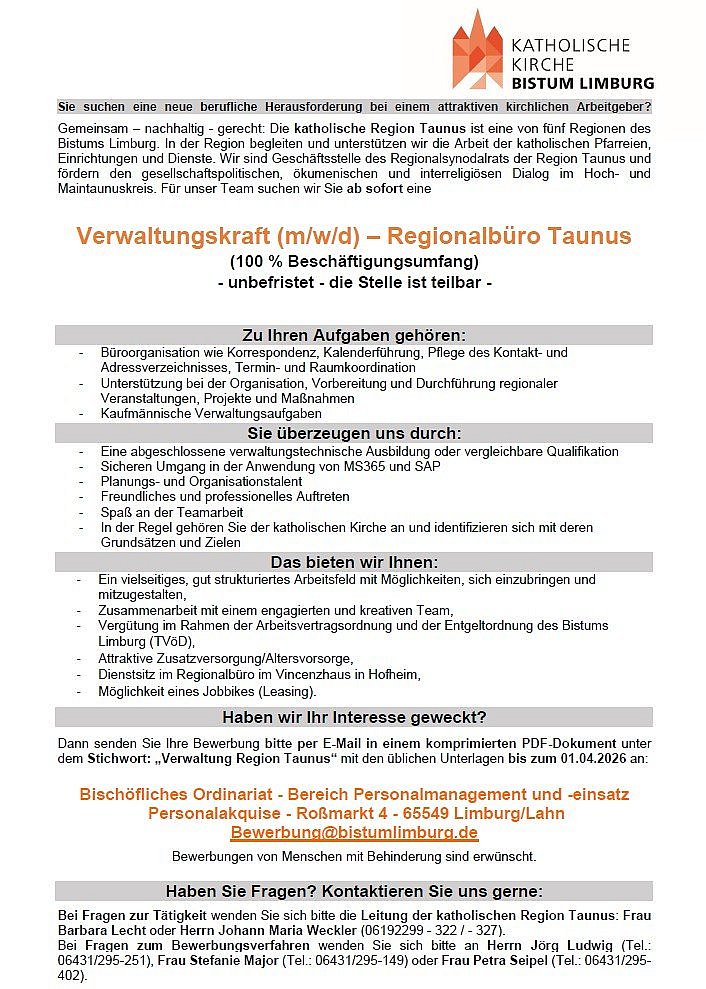 Verwaltungskraft (m/w/d) für das Regionalbüro gesucht