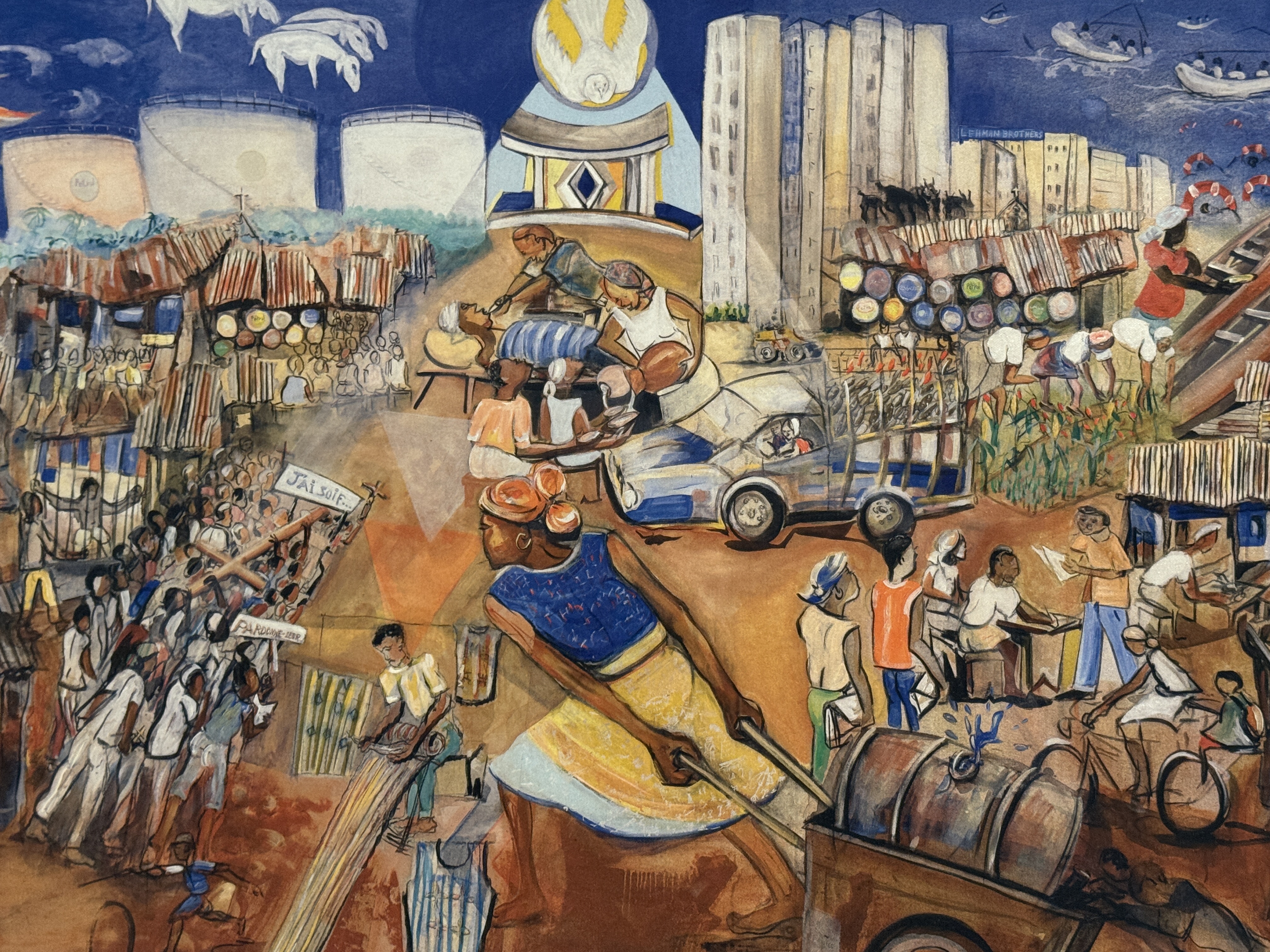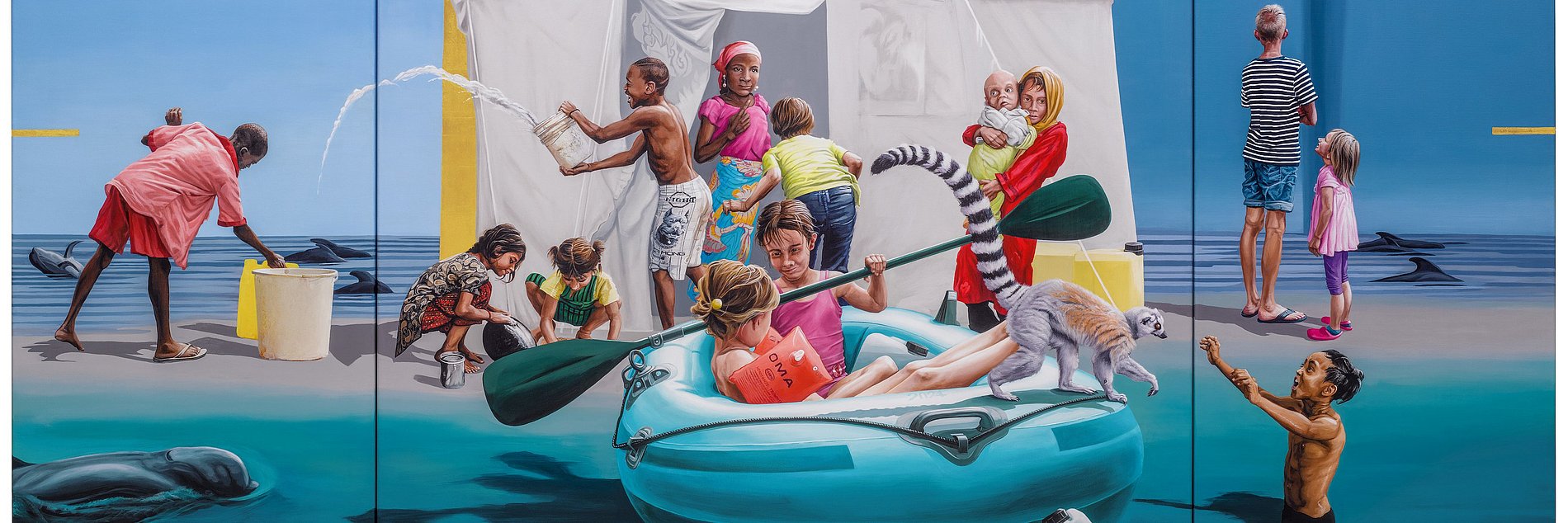 Auch nach dem Jubiläumsjahr wird es wieder ein Hungertuch geben: Das 26. Bild ist zwar noch nicht fertig, aber der kreative Prozess ist bereits im vollen Gange. Beauftragt wurde der in Frankreich lebende Künstler Bruce Clarke mit Verbindungen nach Südafrika und Burundi. In sein Kunstwerk werde er die Emmausgeschichte integrieren, verrät Hannah Braucks von Misereor. In der Regel würden im Vorfeld mehrere Künstlerinnen und Künstler gebeten, einen Entwurf abzugeben. Den inhaltlichen Impuls setzt dabei Misereor. Wenn das Hilfswerk dann den Auftrag vergeben hat, liegt die weitere Ausgestaltung bei der kunstschaffenden Person. Bruce Clarke verbindet in seinen Arbeiten Malerei mit Collagen und arbeitet dabei verschiedene Schichten heraus. Laut Braucks sei Clarke ein politischer Künstler, der über den eigenen Tellerrand schaue und Konflikte aus der Welt in seine Kunst hineintrage. Vorgestellt wird das nächste Hungertuch dann zur Fastenzeit 2027.